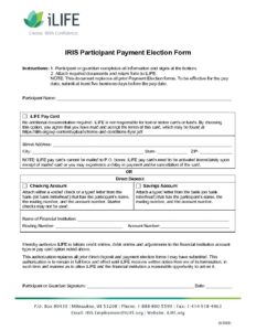 Participant Payment Election Form. Participants complete this iLIFE form to set up direct deposit or an iLIFE pay card.