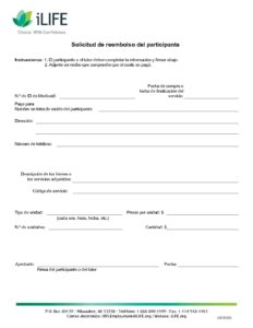 Participant Reimbursement Request Form. This iLIFE form is used by participants to request expense reimbursement for approved goods.